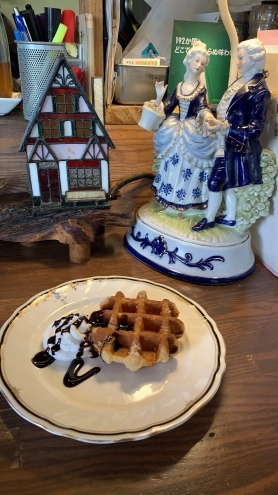 ちょっとしたケーキと紅茶かななんて話し合っていたら、気さくなおじさまが「今日のクレープはストロベリーで、ものすごいよ」との横やり。こういうお店は...