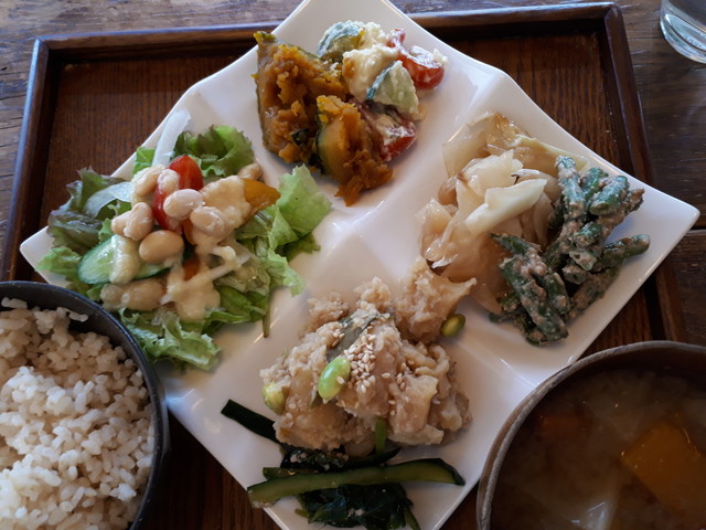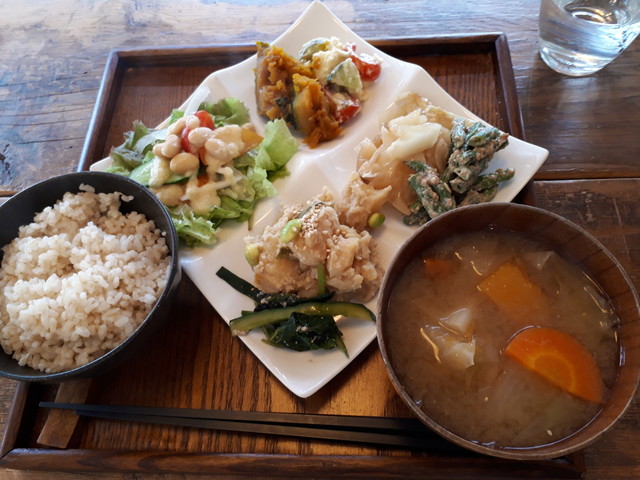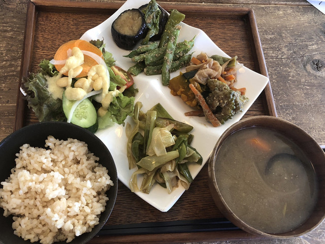 湘南無農薬野菜の直売とこだわり調味料や天然酵母パンの販売もしている、直売所とレストランが一緒になったお店です。お料理や日替わりの手作りクッキー・スコーン・シフォンケーキはすべてお店で販売している食材や調味料を使用したメニューになります。野菜料理以外に無添加ソーセージなどのお肉メニューもございます。 |