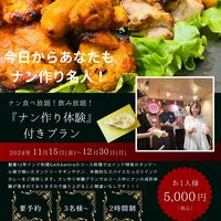 【大人もハマるナン作り体験付きプラン】ナンの成形体験付きの大人が楽しめる特別なコース!歓送迎会や忘年会で盛り上がること間違いなし!!!貸切可(ご相談ください)11品