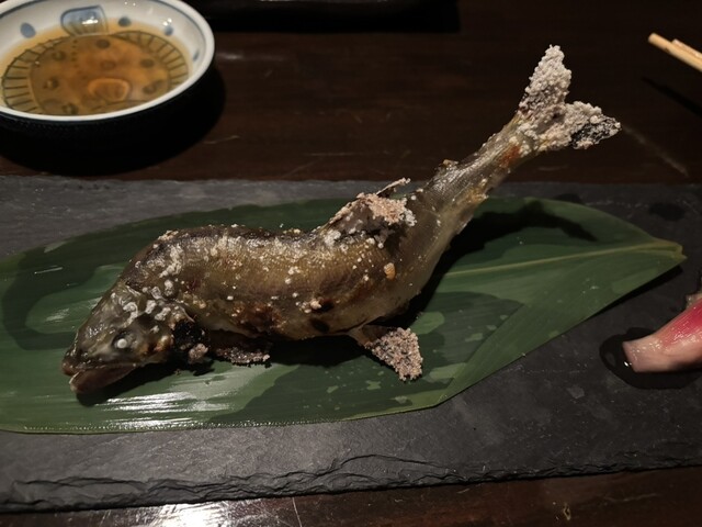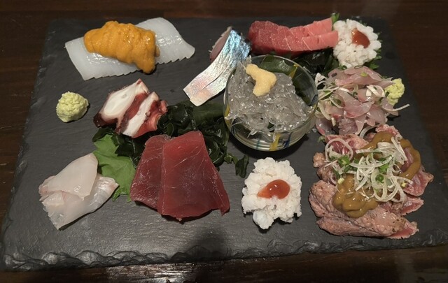 平塚駅前のありふれた飲み屋以外を探している中で住宅街の中にある隠れ居酒屋として発見して初めて行ってみました。(平塚駅北口からタクシーで1500円くらいの距離)書き込みも少なく不安でしたが来店した方の写真がどれも通好み。予想通りのどれも食べたいと思うメニューばかりで味も量も満足。写真はお刺身盛り合わせと鮎の塩焼き。マグロのホホ肉はおすすめ。串にしても焼き方が素晴らしい。かなりセンスのある大将であるこ...
