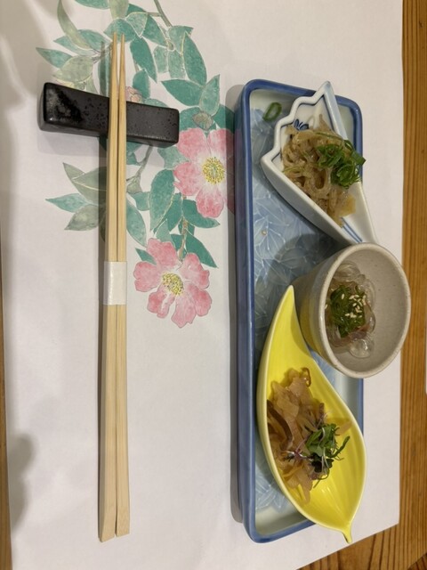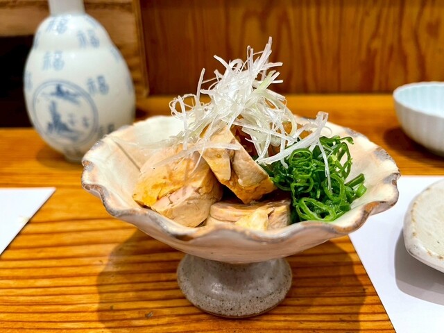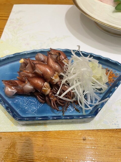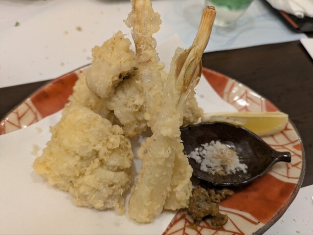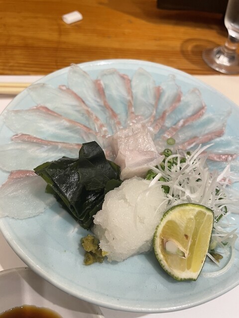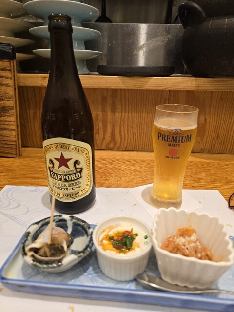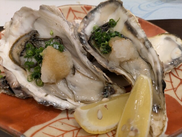 この日は一緒に行った若者たちが肉料理を所望したので、牡蠣、鱧天ぷら、刺し身数点...