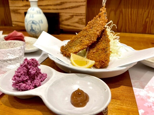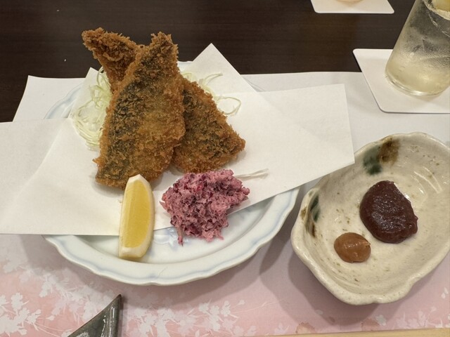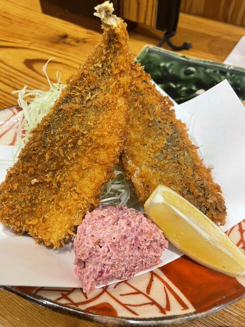 アジフライはいつもの紫キャベツのコールスローがグッド。