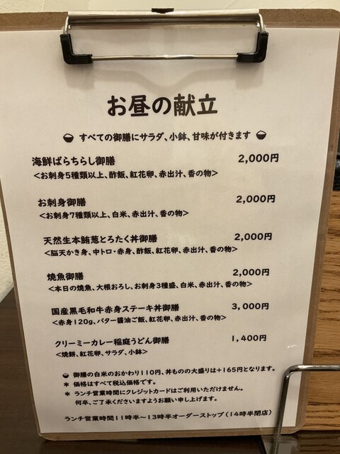 ランチのみカード不可