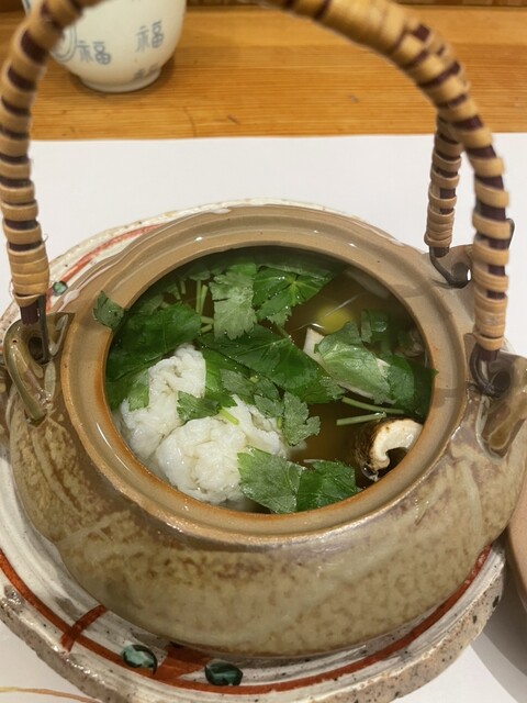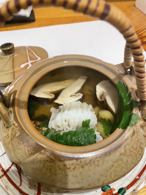 ハモと松茸の土瓶蒸しは前回ほどの香りはなく、出汁も弱めか。