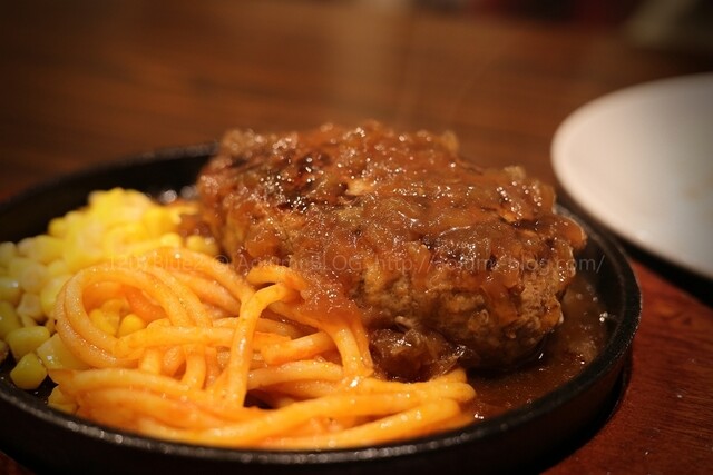 甘すぎないケチャップが最後まで飽きずに食べられます。ハンバーグはプレートのトッピング用は少し小ぶりたけど色々食べたい人はちょうどいい。