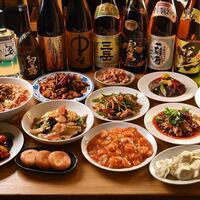 【喜コース】(唐揚げ、チャーハン、担々麺が食べ放題)2020円、+1980円で2H飲み放題付き)前菜3点盛り合わせ、春巻き、エビチリ、珍味「黒酢魚おこげ」、薬膳麻婆豆腐等12品の豪華飲み会コース。14品