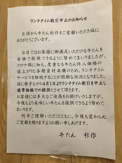 ランチに川崎ミューザ1階にある牛タンの店杉作へ伺いました。