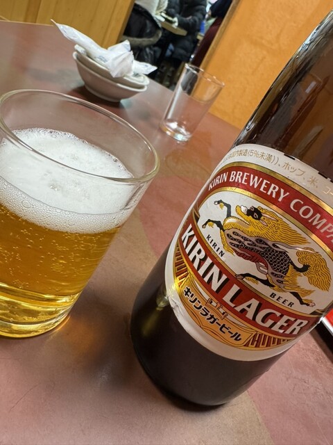 今日はアサヒスーパードライ650円の大瓶で乾杯です。寒くてもビールは美味い。