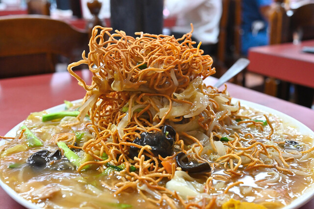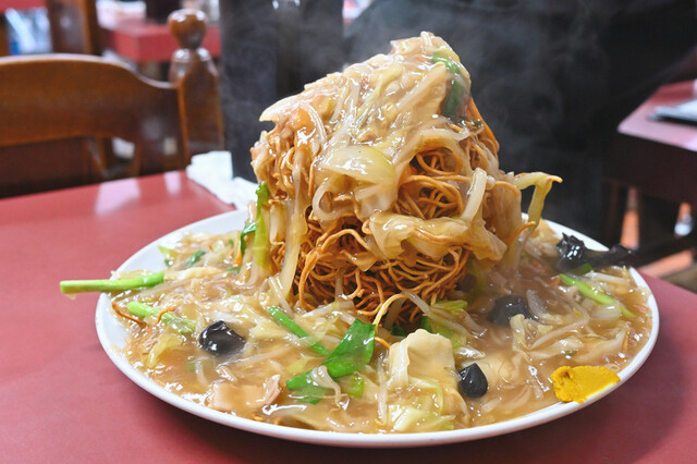 まずはタワー硬焼きそば!ビジュアル強っ!