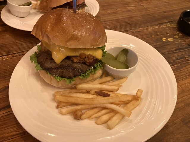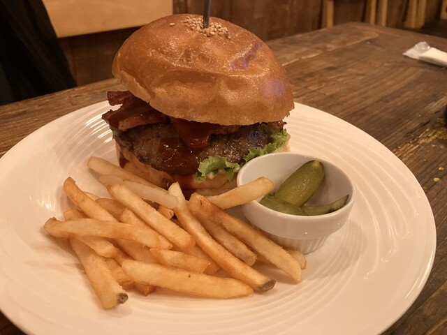 ハンバーガーはバンズ、パテ、野菜のバランスもよく。ジューシーでペロリといってしまいました。