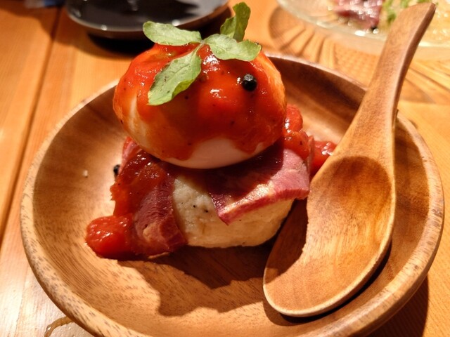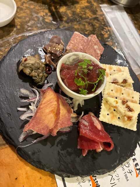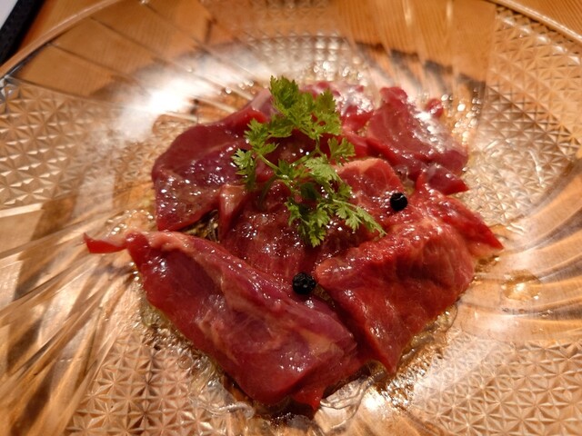 馬刺しバルという、店の特徴に惹かれました。 馬刺しだけでなく、全体的に馬肉料理が充実している点がいいですね。 こちらの感謝の馬肉堪能ディナーコース(3,500円)を注文。 以下、※のついたものは2人分が1皿でやってきた料理です。 1. 彩りタパス三種盛り 合わせるのは芋焼酎THE BA... 詳細を見る
