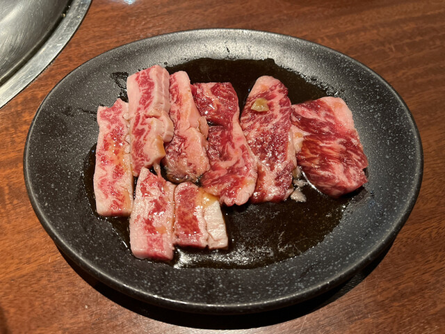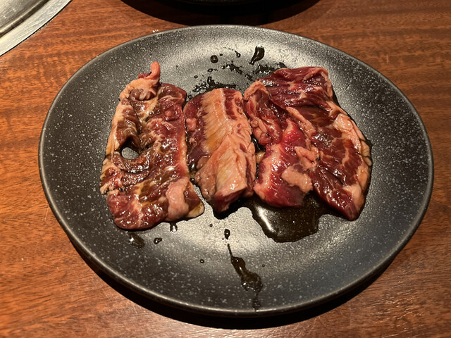 食べ放題はもう胃のキャパ的に元を取るのは無理かな?と思ってアラカルトにしました。ちょっと良さそうな牛タンやハラミを注文。ハラミが酸化して真っ黒だったので「これはお肉の色として正しいのか..?」と不安だったのですが、お味は良かったです。厚切り牛タンはジューシーで絶妙な歯応え!〆の冷麺も満足感があって良かったです。