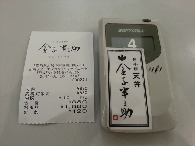 川崎ラゾーナでは金子半之助の天丼をフードコートで食べる事が出来ます