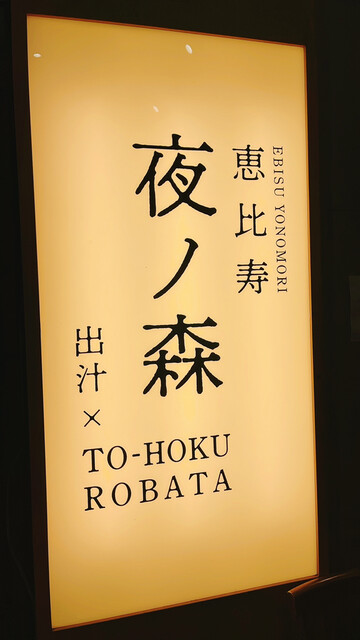 | 正式店名 | 夜ノ森 川崎 東北 炉端焼き 藁焼き 牡蠣 金華サバ 本マグロ おでん 田舎蕎麦 出汁料理 思いつき料理 日本酒 氷結果実サワー |