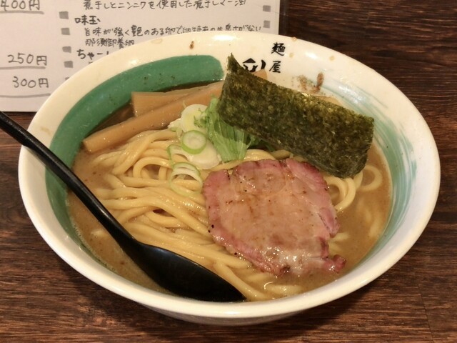 何度も行ってる。近くに来たので来てみた。 チャーシュー麺+味玉 1450円+150円 ○完成度の高さ ✕無し 自家製の太麺の風味と食感の良さは天下無双、この麺の良さを隠さないように寄り添って引き立てる、鰹ではなさそうな節系のスープも抜群。この濃度だとスープが負けそうなものだが(つ... 詳細を見る
