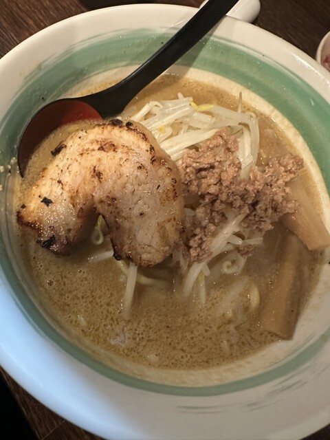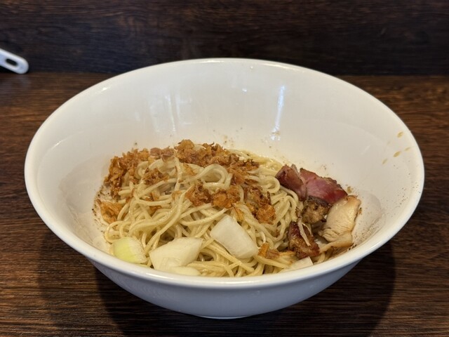 何度も行ってる。近くに来たので来てみた。 チャーシュー麺+味玉 1450円+150円 ○完成度の高さ ✕無し 自家製の太麺の風味と食感の良さは天下無双、この麺の良さを隠さないように寄り添って引き立てる、鰹ではなさそうな節系のスープも抜群。この濃度だとスープが負けそうなものだが(つ... 詳細を見る