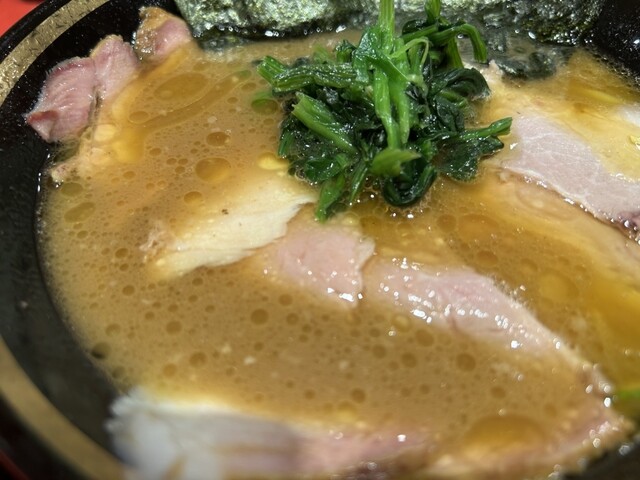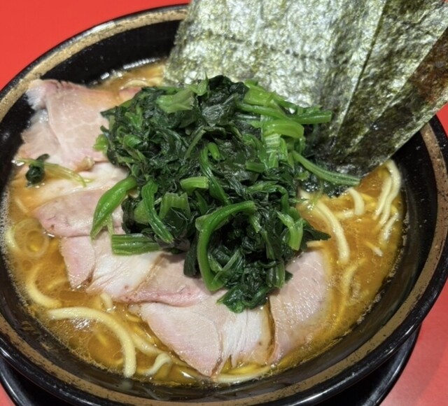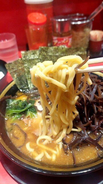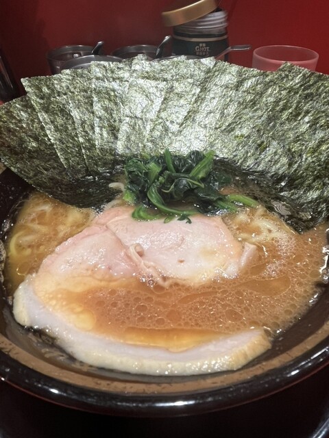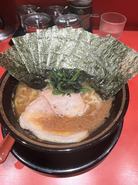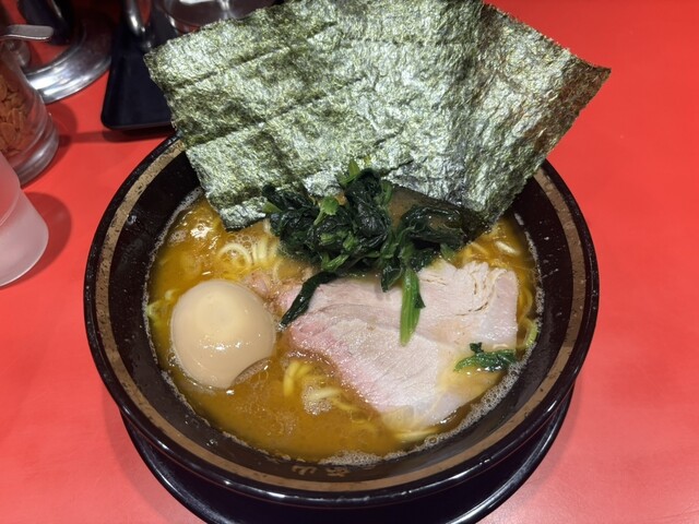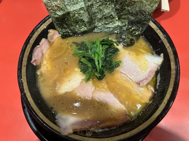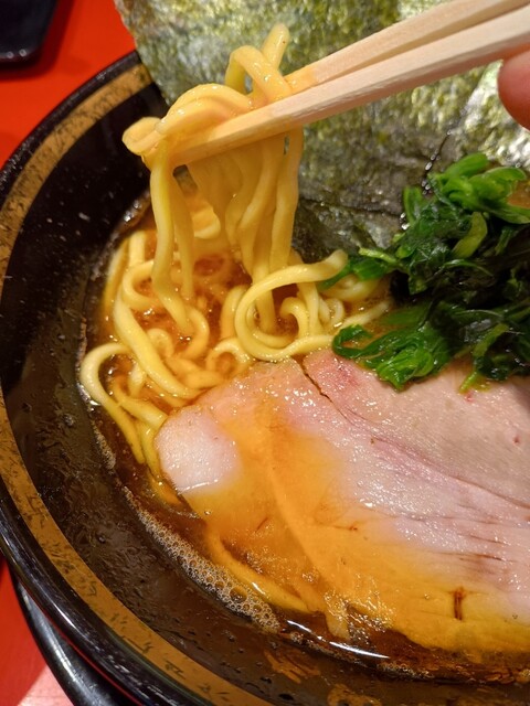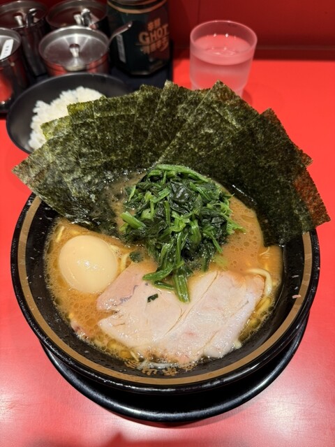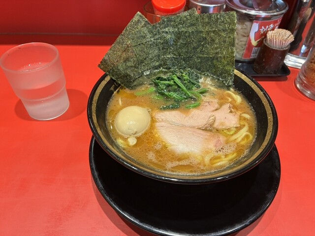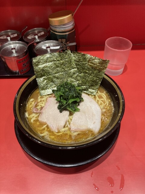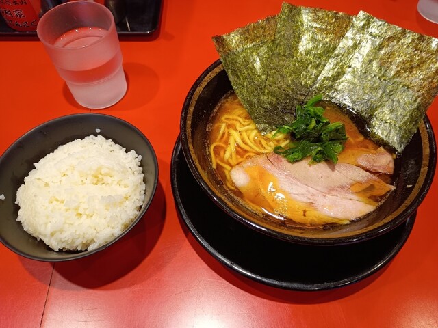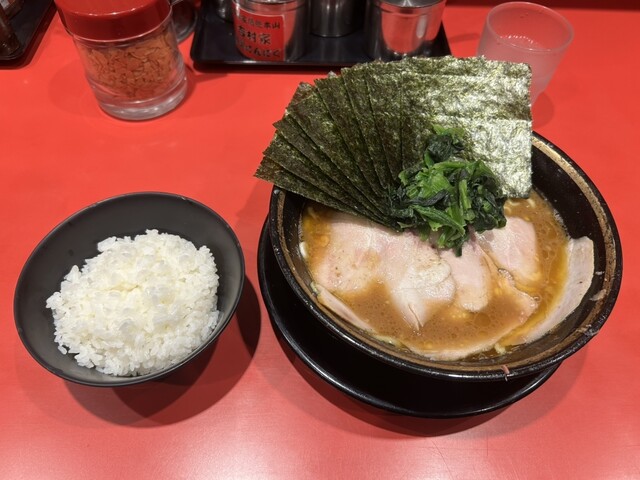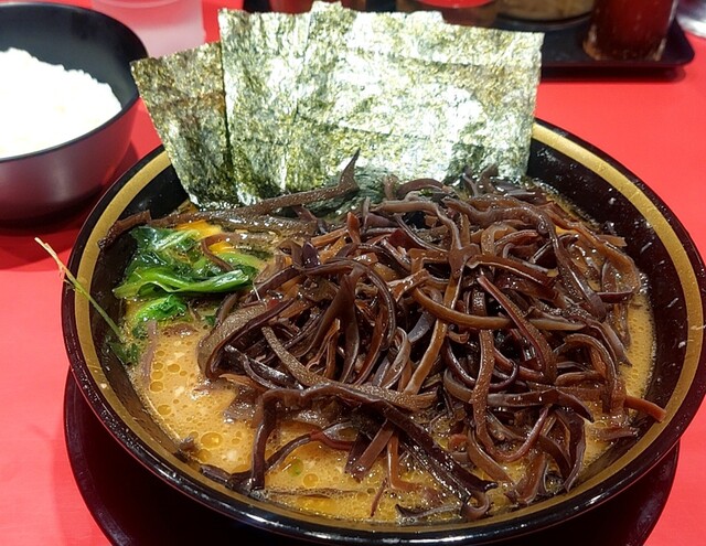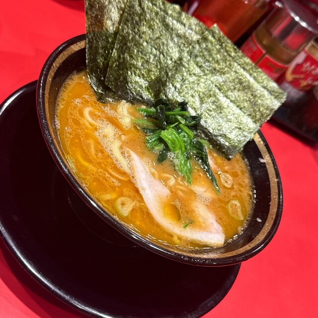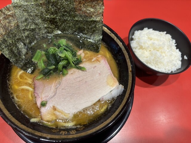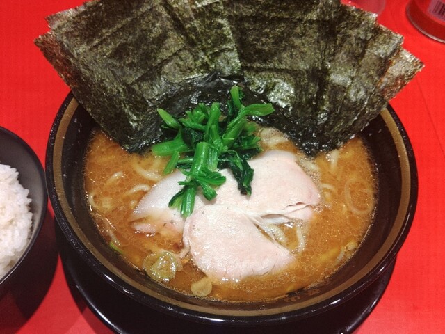 横浜発祥の、中毒性が極めて高い一杯。濃厚な豚骨醤油ベースのスープに鶏油(チーユ)が浮かび、パンチのある旨味が特徴です。スープをたっぷり吸わせた大きな海苔で、豆板醤を乗せたライスを巻いて食べるのが「家系...