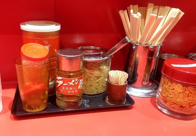 店内はほぼ満席に近い状態でしたが、なんとか空席はあり、案内されて座ります、食券を目の前の台の上に置いて、お好みは全部普通...