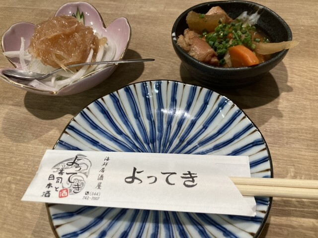 2022年6月、ラゾーナ川崎から徒歩6分の場所にオープンした【寿司と日本酒よってき】。当店では、厳選された鮮魚や炭火焼料理をリーズナブルな価格でご用意しております。新鮮な「刺身の盛り合わせ」は特におすすめ。全国各地から取り揃えた、多彩なこだわりの日本酒とともにお楽しみください。落ち着きのある和空間は、お子様連れのお客様からご接待やご会食まで幅広いシーンに最適。ぜひ、お気軽にお立ち寄りくださいませ。