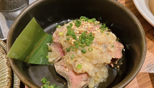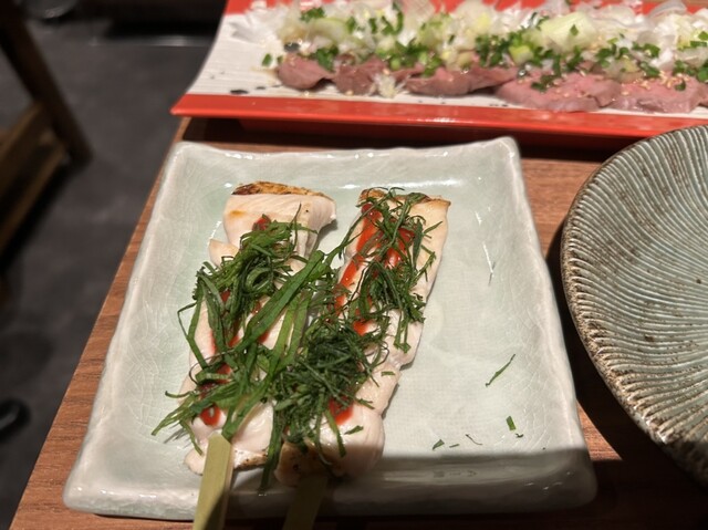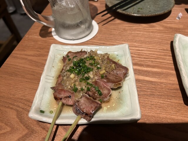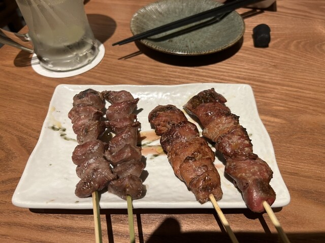 本日はこちらのお店にお邪魔しました!こちらはOPENして間もないとのことですので、楽しみです! まずはビールを頂き、お通しのキャベツのせいろ蒸しと一緒に頂きます。 名物とのことで、 串の6本セット、ハツテキ、ローストビーフのコク玉ユッケ、牛もつ塩煮込みを頂きます! 串はとても柔らかく、旨味もしっかりとありとても美味しいです!このクオリティでこのお値段はリーズナブルすぎる! ハツテキもめち... 詳細を見る