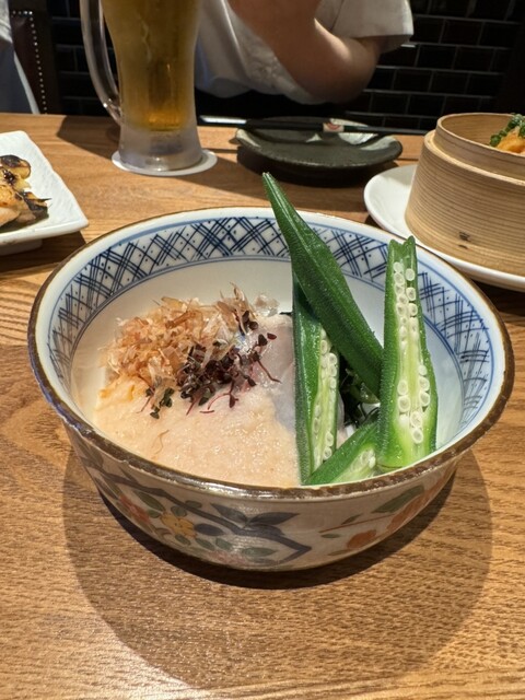 3階の禁煙個室を使用。川崎はまだまだ喫煙居酒屋が多く、禁煙個室のあるお店は貴重です。オーダーはQRで可能で楽。お通しはキャベツのせいろ蒸しで2種類のソースで食べれておかわり自由。ごまだれ、明太子のソー...