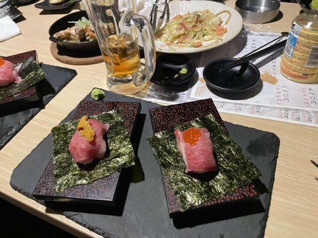 溢れんばかりのいくらととろける和牛肉寿司を食べられる、ハイクラス料理を堪能したお洒落な居酒屋さん!