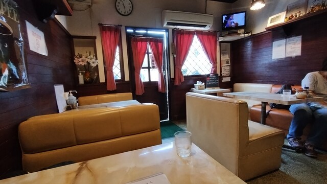 深みのある木目調で統一された喫茶空間にテーブルが4つ並び、流れるテレビがBGM代わり。優しい笑顔で迎えてくれた女将さん...