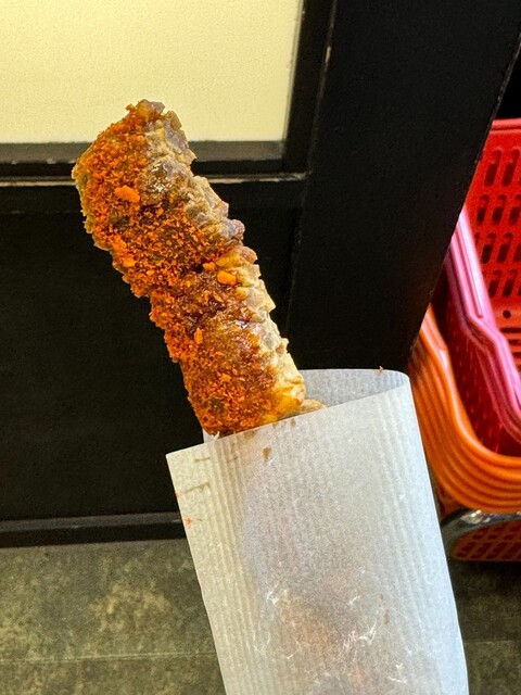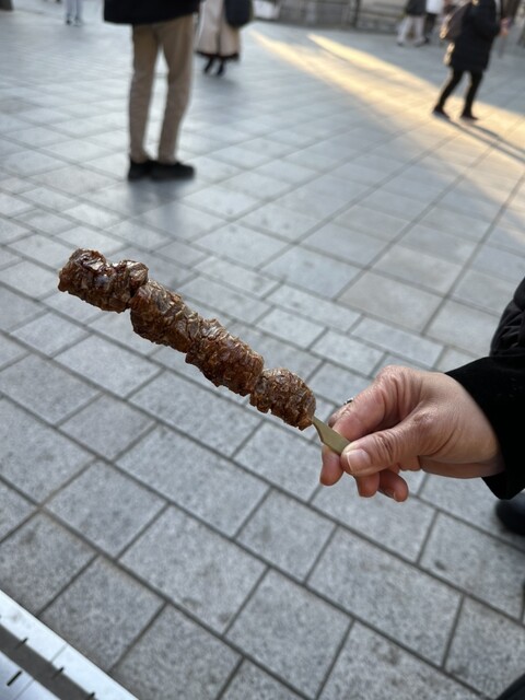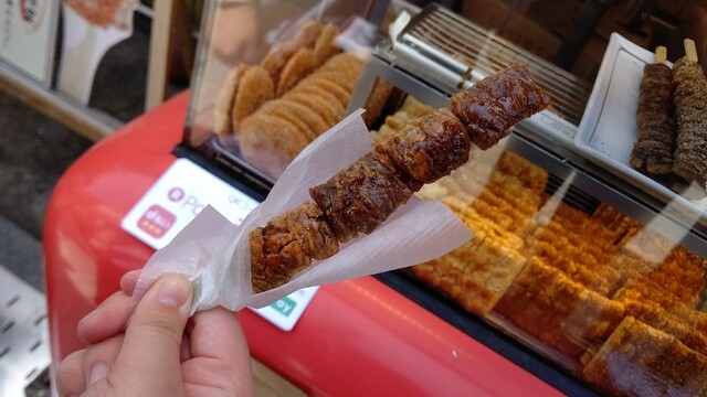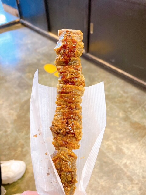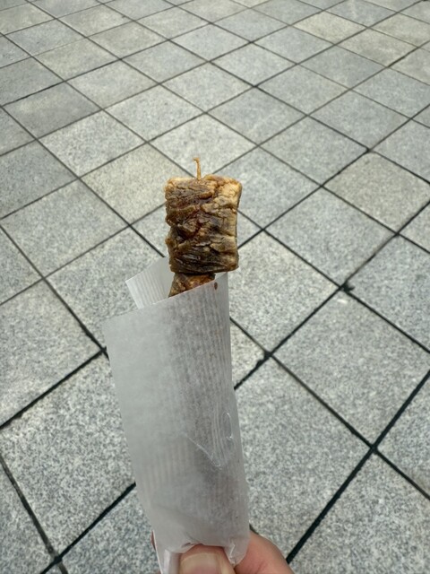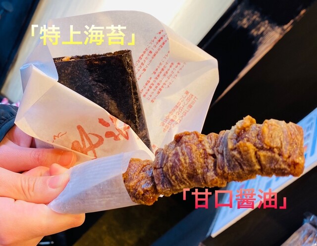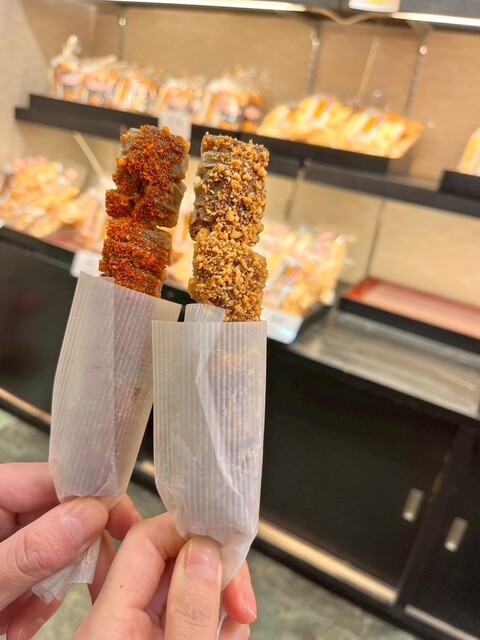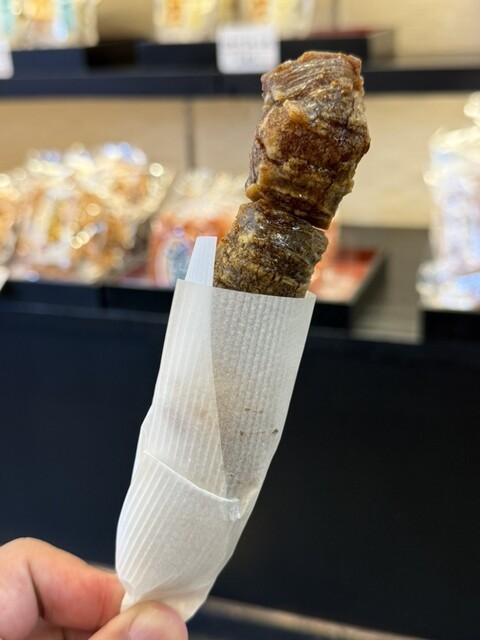 甘口醤油味が定番とのことでこちらを注文しました。なんとも言えない美味しさ!食感といい、甘さといい絶妙なバランスでした。3本くらい食べたくなる感じ!とニンニク味も気になりました!笑