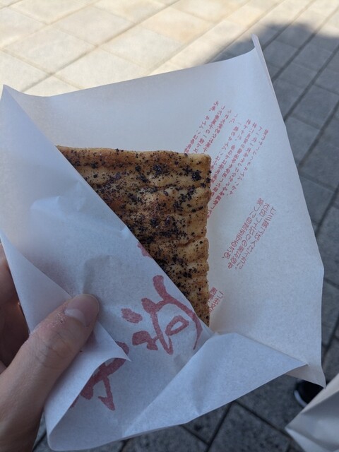 流石、手焼きせんべい専門店なので、辛すぎず甘すぎず、ザラメが美味しい「ザラメ煎餅」でした。