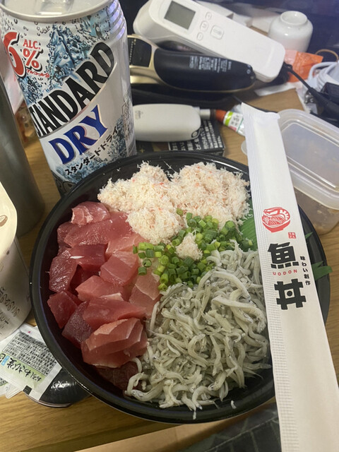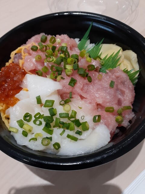 漬けまぐろねぎとろ丼とバラあられ丼。