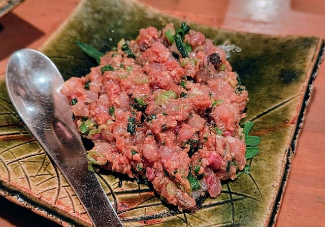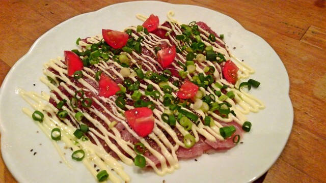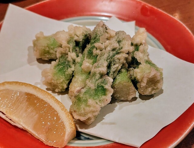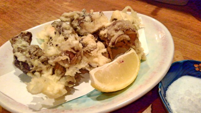 この日は鰺刺し、なめろう、タラの芽の天麩羅、蔵八の和風ピザ、カキフライなどいただきました\(^o^)/