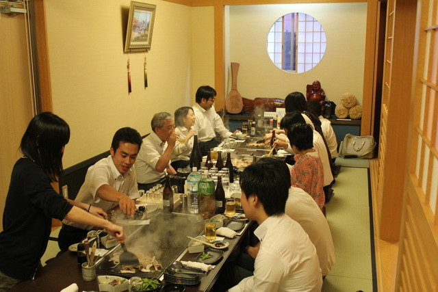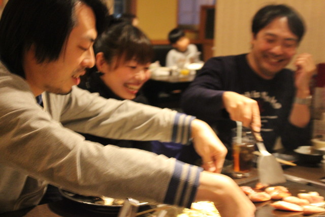 鉄板をみんなで囲んで、お好み焼き・鉄板焼きをみんなでお酒と一緒に食べる!