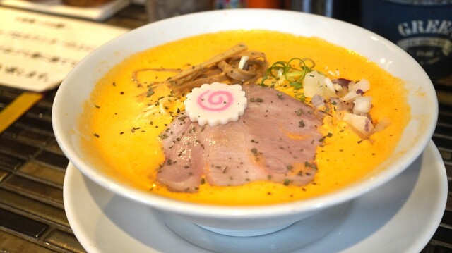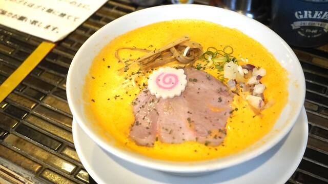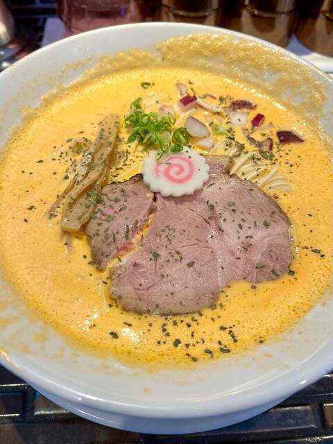 今期のラーメンKANAGAWA百名店に選出されたこちらのお店 ここから徒歩1分の場所にもう一軒百名店あります。 川崎は、なんとも凄いところですね 土曜日11時10分到着で店内半分位 メニューは貝出汁や煮干しもありますが、ボンゴレロッソやボンゴレビアンコという変わり種があり、良く出ているような... 詳細を見る