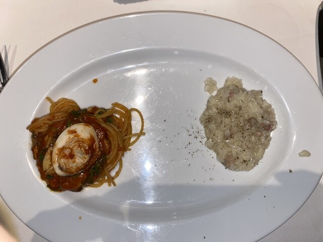 ・選べるパスタ 又は リゾット→私はリゾットを選択。イタリアではフォークで食べるとの店員さんの話でトライ。これがなかなか美味しい。あっさり入ります。