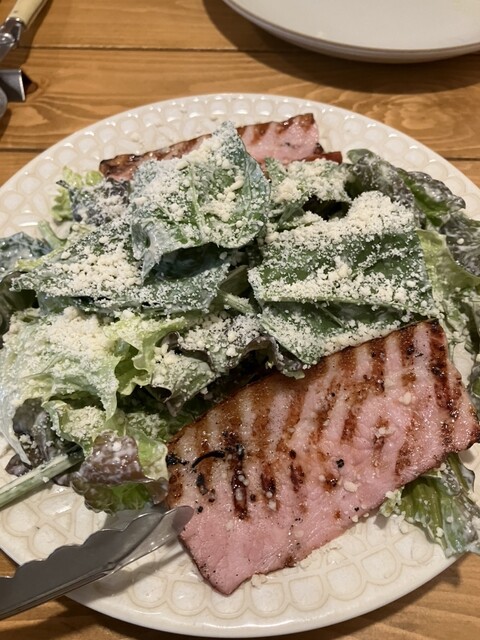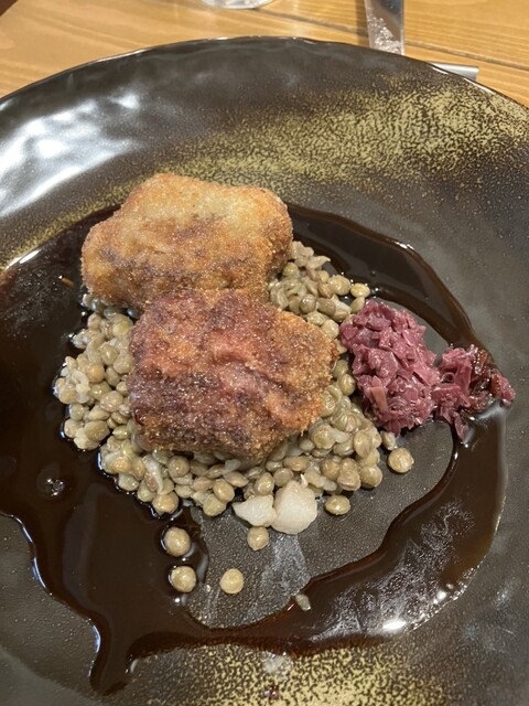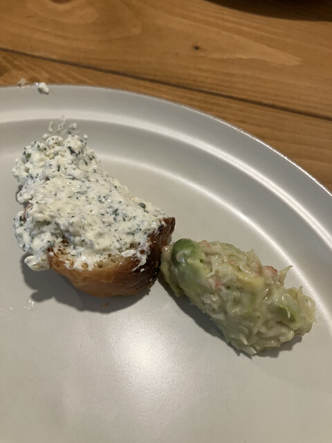 ○蟹とアボガドのタルタル・バケット添え タルタル系にバケット、鉄板です。蟹の風味にアボガドの脂感、ツマミに最高です。 ○自家製ベーコンシーザーサラダ フリルレタスと大きいベーコンが特徴的。自家製ベーコン美味かったです。だから大きめカットなんだなと。 ○オニオングラタンスープ ○... 詳細を見る
