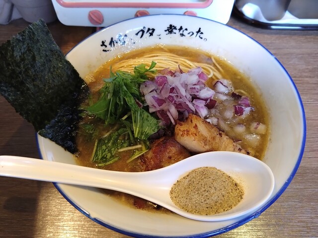 超濃厚な豚ゲンコツと鶏のベースに、サバ、宗田ガツオ、昆布、そして大量の厳...