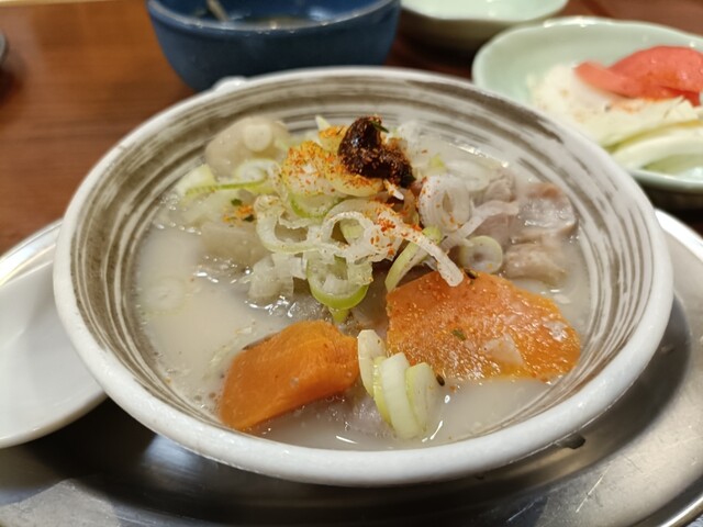 ■名物!煮込みは一味違う旨さ!じっくり煮込んだ秘伝の白湯スープは、豚もつの旨味が染みわたる逸品です。特製の辛味噌を溶かせば、コクがさらに引き立ちます。