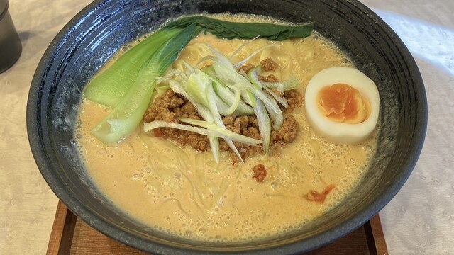 平日の12時5分に入店、5割くらいの客入り。店外にある券売機で限定の胡麻豆乳坦々麺900円の食券を購入し店内へ。食券を店員さんに渡し、平日ランチ限定の麺大盛無料をお願いしました。ト... 詳細を見る