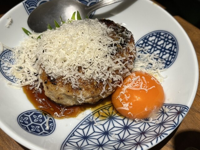 ・パルミジャーノチーズ炭火月見つくね(Minced Chicken with Parmesan Cheese):880円