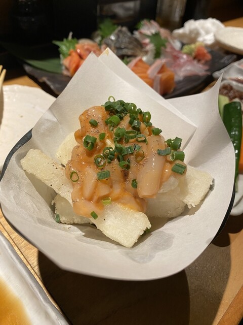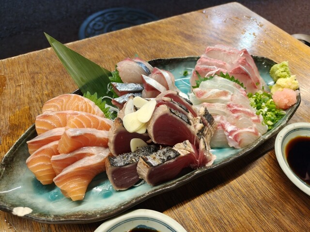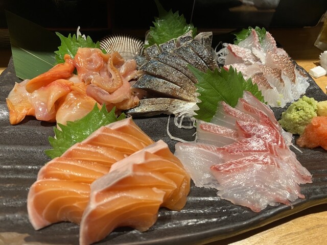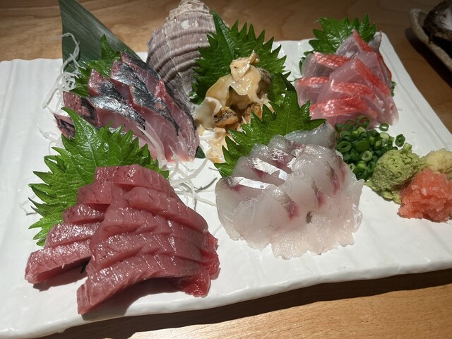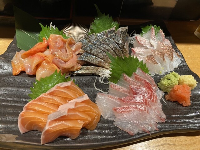 日曜の夜に、初訪問。 20:30に電話したら、21時からカウンターで予約が取れました。 ありがたい…というか、日曜夜なのにけっこうお客さん入ってる。 名物の「刺盛5点盛り... 詳細を見る