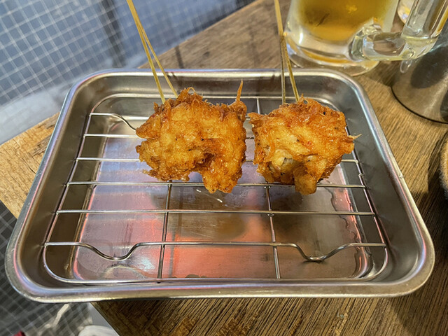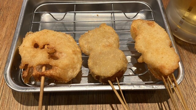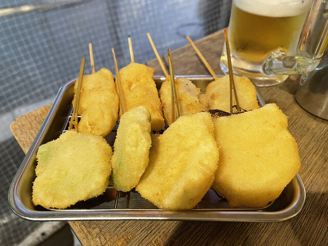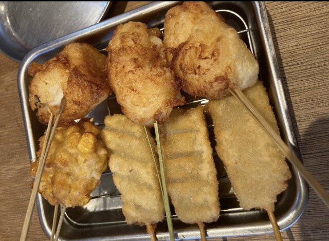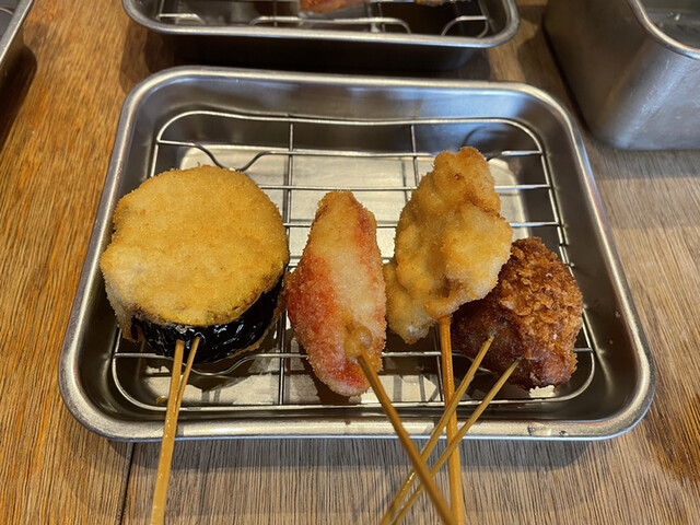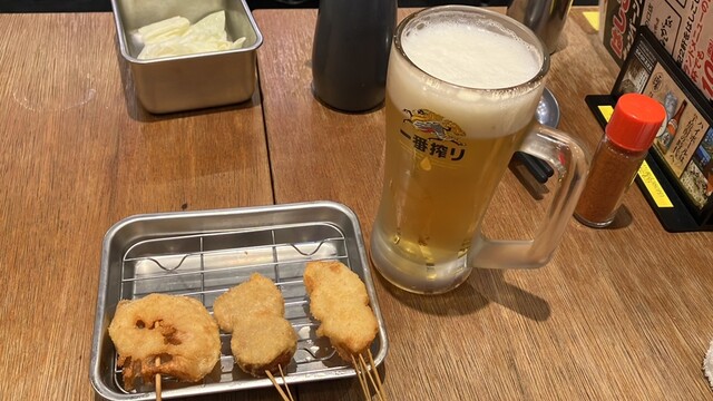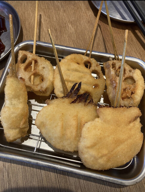 溝の口西口出てすぐのところ。 串かつの看板が見えて入ることに決定。 QRコードにて注文。 メニューや店内看板見ながら選べます。 ・ビールとウーロン茶 ・ポテサラ ... 詳細を見る