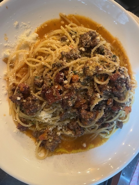 牛かぶりと夏野菜のラグーパッケリ (by お店)
