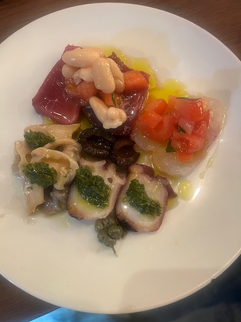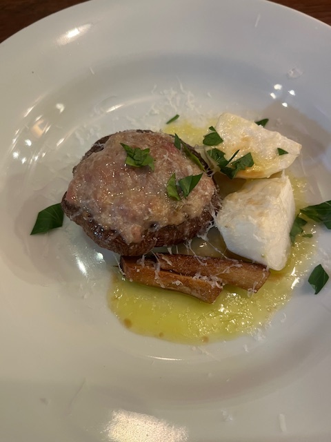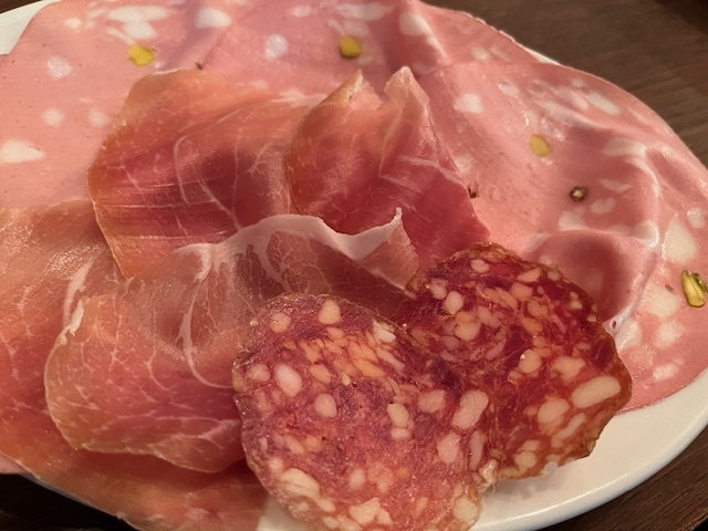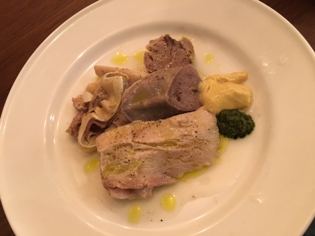 前菜盛合わせはかなり奮発していただいたかんじ。特に美味しかったのが茄子とパテ。
