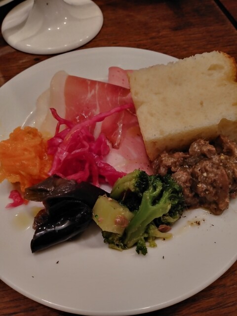 前菜盛合わせはかなり奮発していただいたかんじ。特に美味しかったのが茄子とパテ。