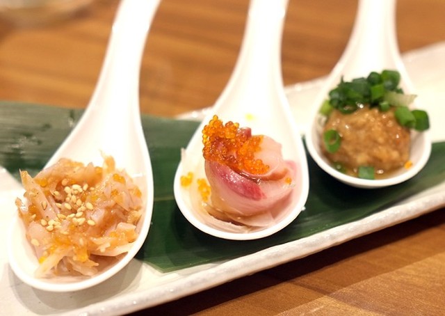 2018年8月15日、友人と2名で初訪問。 こちらのお店、6月にオープンされたばかりの鮮魚と肉の炭焼炉端のお店です。 場所は、溝の口駅から、徒歩3分ほどの飲食店ビルの3階で、店内は開店して、まだ3ヶ月足らずなので、お洒落で綺麗で落ち着いた雰囲気です。 お通しは、美味しい鴨ロースとチーズの燻製。 頂いたお料理は、 『お刺身5点盛り合わせ』(980円)…ブリ、イナダ、サーモン... 詳細を見る
