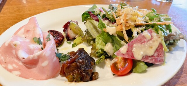☆前菜盛り合わせ+サラダ+温前菜+選べるピッツァ2種☆ロクアーチェコース★10品¥3,000★10品