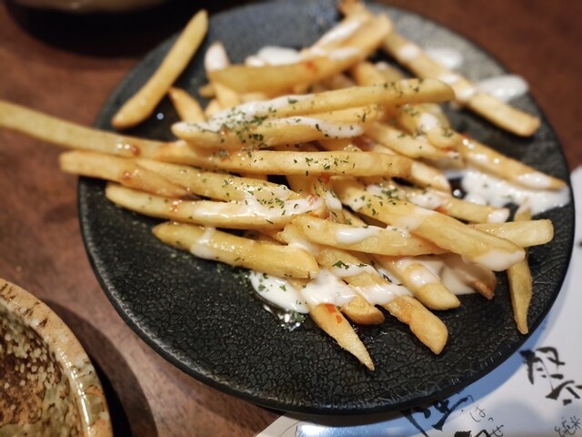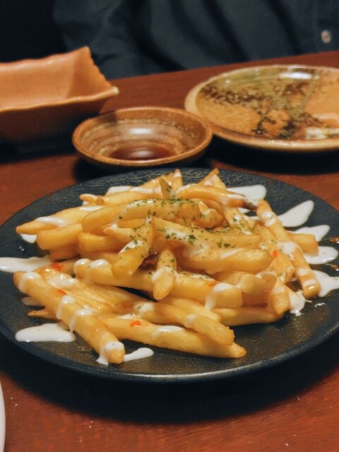以上までがコース。他にポテトフライを単品注文。飲み放題付きのコースです。もつ鍋のボリュームがもう少しほしいけどお料理はどれも美味しかった!