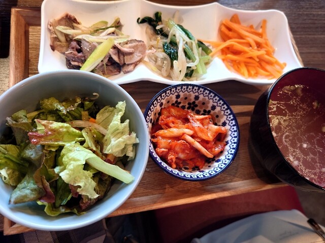 前菜として自家製のナムル3種類(520円税込572円)をお出ししています。何度でもお替り出来ますので、焼肉とご一緒や箸休めとしてお楽しみ下さい。 |