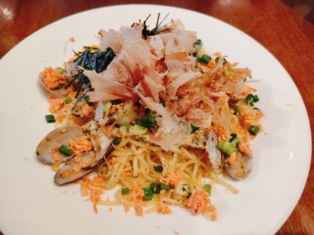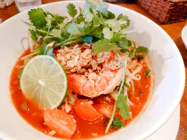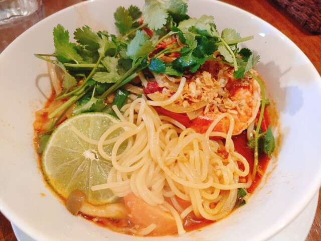 白を基調とした素敵な店先で、飾らないオシャレな店内。店員さんも皆若く元気があり、居心地が良い空間です。 期間限定“トムヤムクンパスタ(1,580円)”アサリ、エビ、ホタテ、サ... 詳細を見る