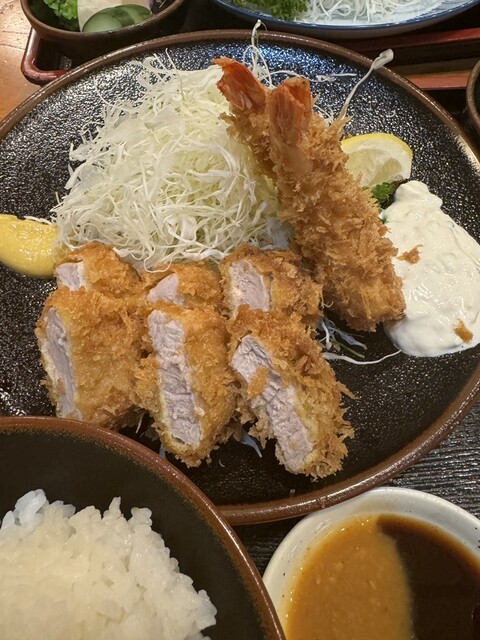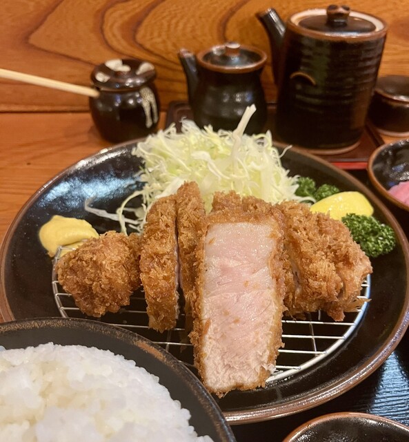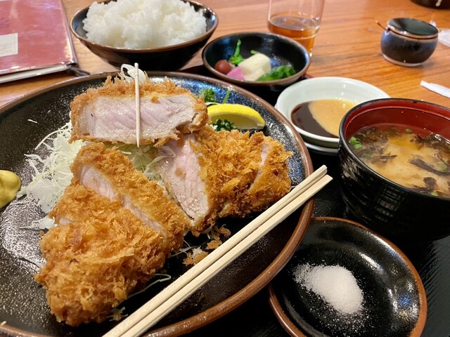 ★最高の味と品質を保つため、肉・米をはじめとした食材は、指定牧場や契約農場から仕入れ、オリジナルのパン粉や自家製ソースにも妥協をしない徹底的なにこだわりがリピーターを呼び、長年地元で愛されて支持されてきました。人気の海老ヒレかつ定食(1,760円)は、ジューシーなヒレかつとプリプリの海老のとってもお得な組み合わせ。ぜひご賞味ください。